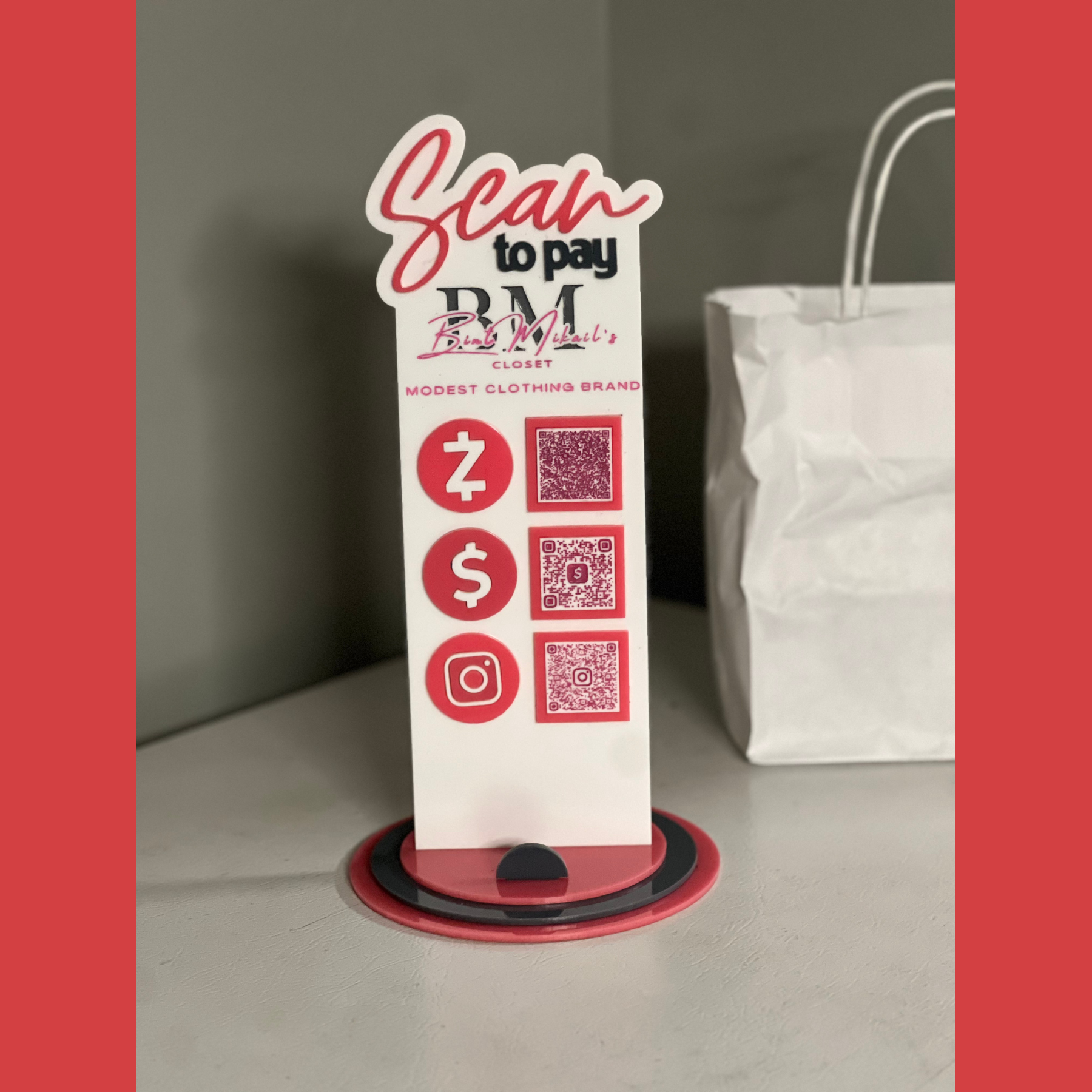 Display your digital payment or social media info in style! This sleek, customizable wood or acrylic QR sign is perfect for vendors, small business owners, and event hosts. Choose from 1, 2, or 3 QR codes ā ideal for linking to Venmo, CashApp, Zelle, Instagram, or your Link tree!
