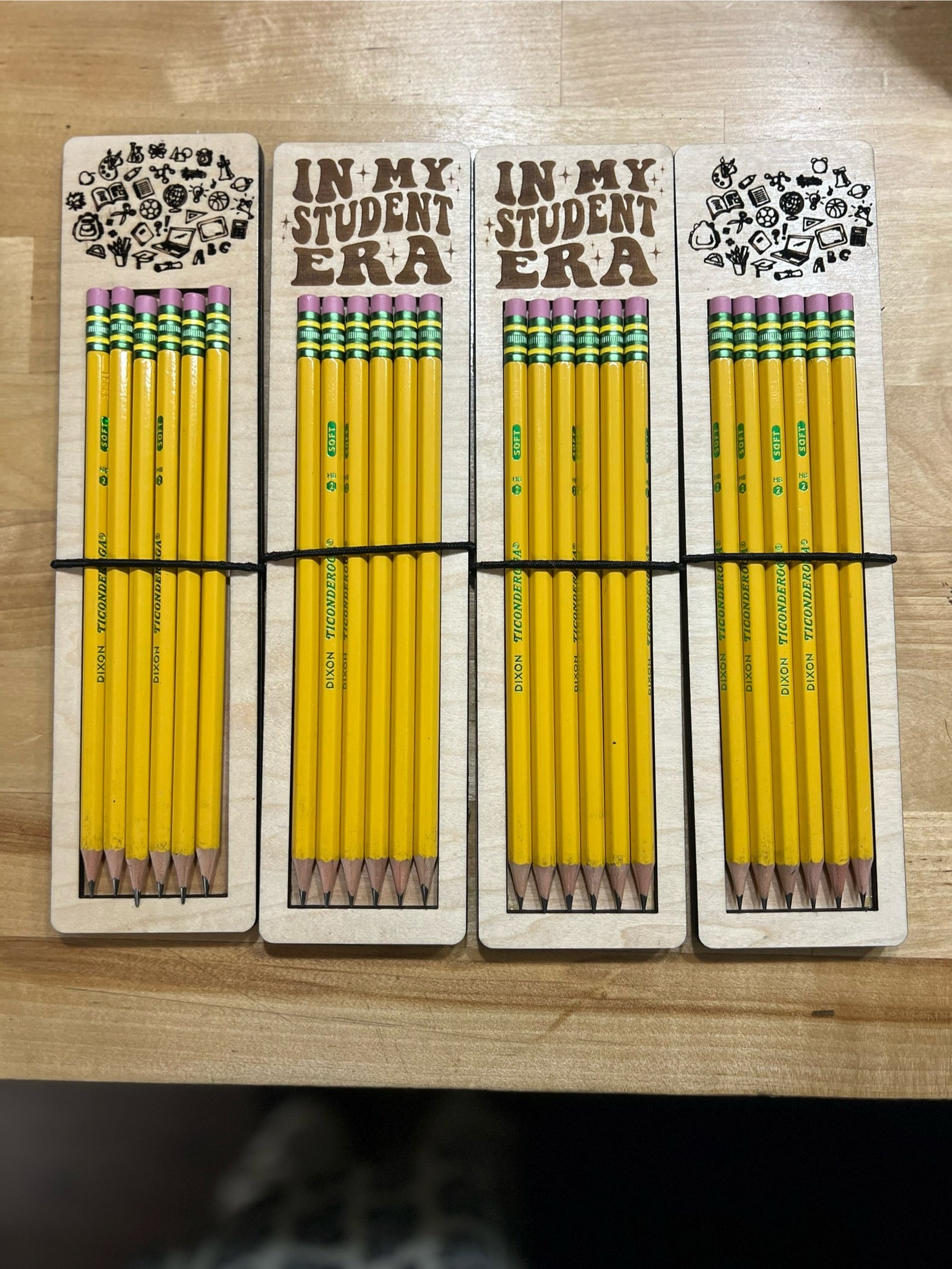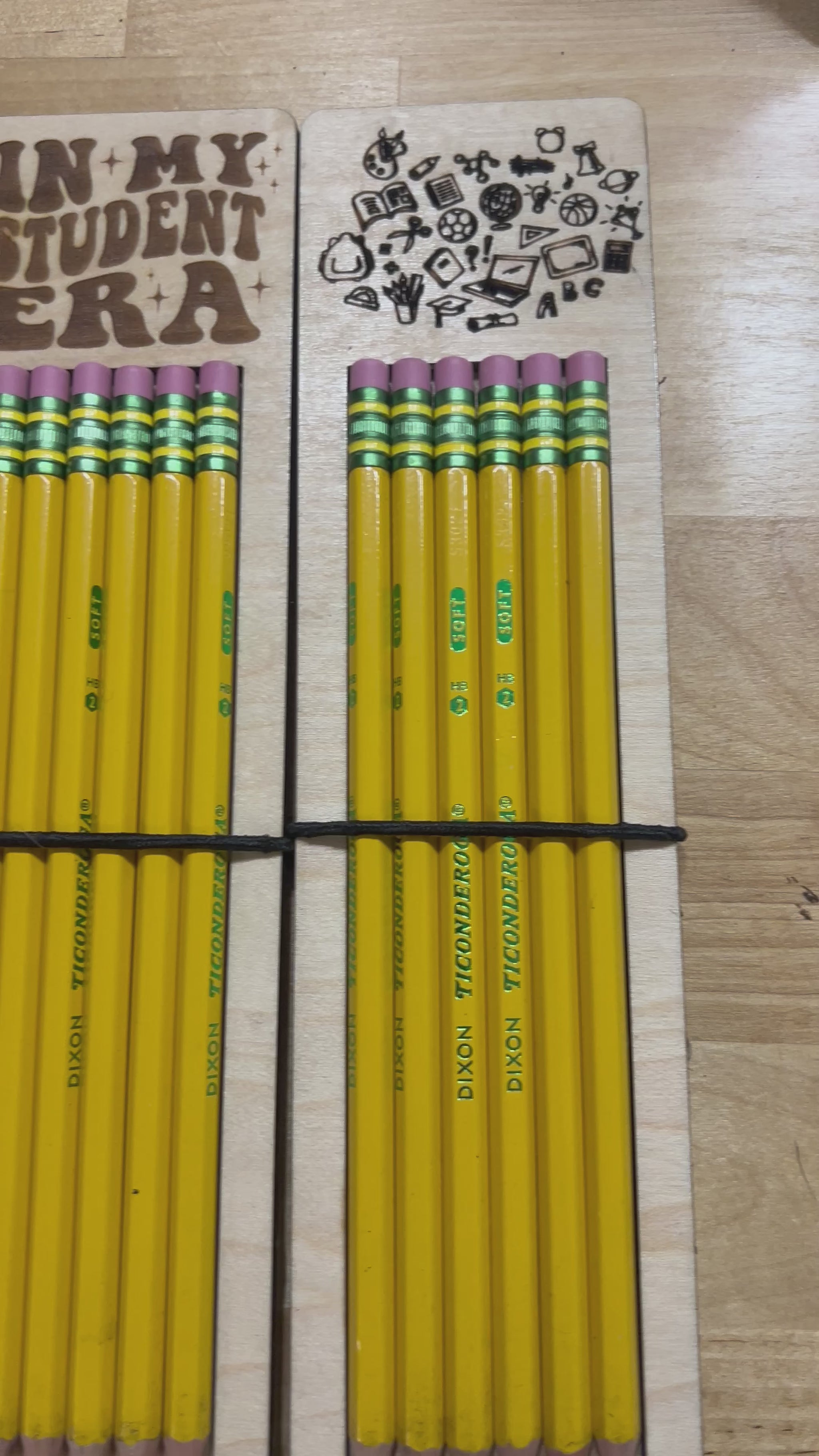Make a statement with our custom pencil holder! This fun and functional display is perfect for back-to-school gifts, teacher appreciation, student swag, or desk organization. Each wooden holder snugly fits 6 standard #2 pencils and features playful school-themed icons or a bold engraved message.